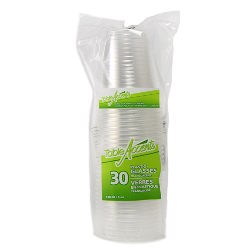 Table Accents – Plastic Glasses – 5oz – Clear – 30Pk