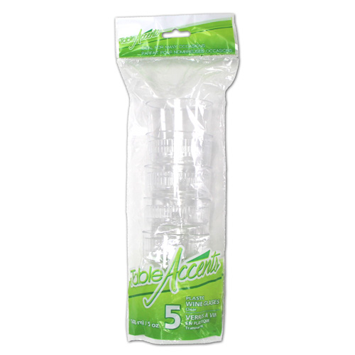 Table Accents – Plastic Wine Glasses – 5oz – Clear – 5Pk